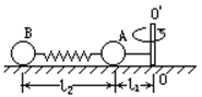 13.A、B两球质量分别为m1与m2,用一劲度系数为K的轻弹簧相连,一长为l1的细线与m1相连,置于水平光滑桌面上,细线的另一端拴在竖直轴OO`上,如图所示,当m1与m2均以角速度ω绕OO`做匀速圆周运动时,弹簧长度为l2。求: