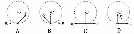 2、在水平面上,小猴拉着小滑块做匀速圆周运动,O点为圆心,能正确地表示小滑块受到的牵引力F及摩擦力Ff的图是( )