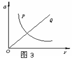 12.如图3所示为质点P、Q做匀速圆周运动的向心加速度随半径变化的图线.表示质点P的图线是双曲线,表示质点Q的图线是过原点的一条直线.由图线可知 ( )