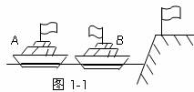 4.如图1-1所示,由于风的缘故,河岸上的旗帜向右飘,在河面上的两条船上的旗帜分别向右和向左飘,两条船运动状态是 ( )