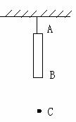 5、如图所示,用绳栓住木棒AB的A端,使木棒在竖直方向上静止不动,在A端正下方有一点C距A端0。8米,若把绳轻轻剪断,测得A、B两端通过C点的时间差是0。2s,g取10米/秒2,求木棒AB的长度?