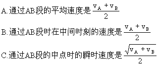 10.某物体作匀加速直线运动,先后通过A、B两点,经A点时速度是vA,经B点时速度是vB,则下列说法正确的是 ( )