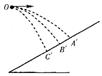 10.如图所示,从某点O先后以大小不同的初速度vA、vB、vC,水平抛出三个小球A、B、C,三个物体分别落在同-斜面上的A'、B'、C'三点,则关于三个小球的初速度vA、vB、vC 及三个小球在空中平抛运动的时间tA、tB、tC 的大小关系,下述说法正确的是