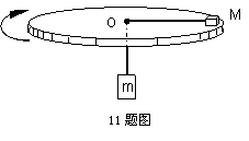 如图所示,在水平转台上放一个质量M=2kg的木块,它与转台间最大静摩擦力fm=6.0N,绳的一端系住木块,穿过转台的中心孔O(孔光滑),另一端悬挂一个质量m=1.0kg的物块,当转台以ω=5rad/s匀速转动时,木块相对转台静止,则木块M到O点的距离可能是(g=10m/s2,M、m均视为质点):