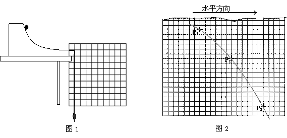 13.某同学利用图1所示装置做“研究平抛运动”的实验,根据实验结果在坐标纸上描出了小球水平抛出后的运动轨迹,但不慎将画有轨迹图线的坐标纸丢失了一部分,剩余部分如图2所示,图2中水平方向与竖直方向每小格的长度均代表0.10m,P1、P2和P3是轨迹图线上的3个点,P1和P2、P2和P3之间的水平距离相等。(g=10m/s2,不计空气阻力)