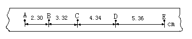(如下图)使用打点计时器研究匀变速直线运动的实验中,某次纸带记录情况如图所示,如果从某点A起,每5个点取一个计数点,并标明A、B、C、D、E,依图中数据算出小车的加速度大小是