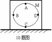 如图所示,质量为M的物体内有圆形轨道,质量为m的小球在竖直平面内沿圆轨道做无摩擦的圆周运动,A与C两点分别是轨道的最高点和最低点,B、D两点是圆水平直径两端点。小球运动时,物体M在地面静止,则关于M对地面的压力N和地面对M的摩擦力方向,下列说法中正确的是