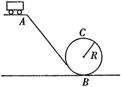 (14分)如图所示是一个设计“过山车”的试验装置的工作原理示意图,光滑斜面AB与竖直面内的圆形轨道最低点平滑连接,圆形轨道半径为R.一质量为m的小车(可视为质点)在A点由静止释放沿斜面滑下,当小车第一次经过B点进入圆形轨道时对轨道的压力为其重力的7倍,小车恰能越过圆形轨道最高点C完成圆周运动并第二次经过最低点沿水平轨道向右运动:已知重力加速度g.
