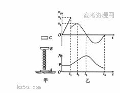 17、(14分)(8、9、10班同学做)如图甲所示,竖直弹簧下端与放在水平地面上的物块A相连,上端与物块B相连.物块C从B的正上方某处自由落下,与B碰撞后黏合在一起.在物块C正上方放置一个速度传感器,以测量C下落的速度