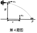4.如图所示,在一次空地演习中,离地H高处的飞机以水平速度v1发射一颗炮弹欲轰炸地面目标P,反应灵敏的地面