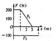 某物体同时受到两个在同一直线上的力F1、F2的作用,物体由静止开始做直线运动,其位移与力F1、F2的关系图像如图所示,在这4m内,物体具有最大动能时的位移是:(