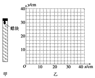 (12分)如图甲所示,在一端封闭、长约1 m的玻璃管内注满清水,水中放一个蜡烛做的蜡块,将玻璃管的开口端用胶塞塞 紧.然后将这个玻璃管倒置,在蜡块沿玻璃管上升的同时,将玻璃管水平向右移动.假设从某时刻开始计时,蜡块在玻璃管内每1