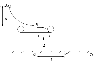 19.(12分)如图所示,AB是一段位于竖直平面内的光滑轨道,高度为h,末端B处的切线方向水平,将一个质量为m的物体P从轨道顶端A点由静止释放,从B端飞出,落到地面的C点,落地时相对于B点的水平位移OC=l.现在轨道下方紧贴B点安装一水平传送带(传送带轮的大小忽略不计),传送带的右端与B的距离为