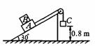 ,斜面体上表面光滑,与水平地面间摩擦力足够大,物体C距地面的高度为0. 8 m,斜面倾角为300. (g取10米/秒2)求: