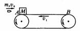 18(15).如图所示,水平传送带AB足够长,质量为M=1 kg的木块随传送带一起以v1=3