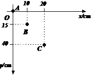 (2)在研究小球平抛运动的实验中,某同学只记录了A、B、C三个点而忘了抛出点的位置,今取A为坐标原点,建立了如右图所示坐标系,平抛轨道上三点的坐标值图中已网标出,则小球平抛的初速度为 m/s ,小球抛点的坐标x: cm;网y: cm