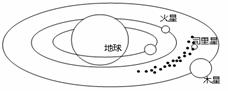 新华社华盛顿2010年4月29日电,美国航天局28日晚发表新闻公报说,科学家利用该局的红外望远镜设备在火星和木星间小行星带上的司理星表面发现了水冰和碳基有机化合物,这表明一些小行星以及彗星可能是地球生命初期的水源供应者。如示意图,我们通过所学的知识可以推测