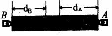 如图所示,木块静止在光滑水平面上,子弹A 、B 从木块两侧同时水平射入木块,最终都停在木块中,这一过程中木块始终保持静止。现知道子弹A 射入的深度dA.大于子弹B 射入的深度dB.,若用tA、tB分别表示它们在木块中运动的时间,用EkA 、 EkB表示它们的初动能,用vA、vB 表示它们的初速度大小,用mA、mB表示它们的质量,则可判断(