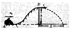 17.(9分)如图所示,运动员驾驶摩托车做腾跃特技表演.运动员从斜坡底部的A处,以v0=10m/s的初速度保持摩托车以额定功率P0=1.8kW行驶.经t=13s的时间冲上斜坡,然后从斜坡顶部的B点水平飞出。已知人和车的总质量m=180kg,坡顶高度h=5m,落地点距B点的水平距离s=16m,不计空气阻力,重力加速度g =10m/s2.求:
