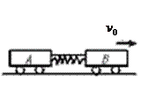 19.(13分) 如图所示,光滑轨道上,小车A、B用轻弹簧连接,将弹簧压缩后用细绳系在A、B上.然后使A、B以速度v0沿轨道向右运动,运动中细绳突然断开,当弹簧第一次恢复到自然长度时,A的速度刚好为0,已知A、B的质量分别为mA、mB,且mA<mB.求: