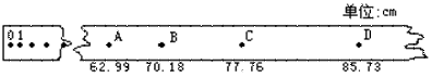 (2)下图是实验中得到的一条纸带。已知打点计时器所用电源的频率为50Hz,当地的重力加速度 g=9.80m/s2,测得所用重物的质量为1.00kg,纸带上第0、1两点间距离接近2mm,A、B、C、D是连续打出的四个点,它们到O点的距离如图所示。则由图中数据可知,重物由O点运动到C点的过程中,重力势能的减少量等于