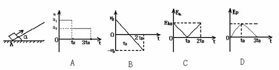 12.一质量为m的滑块以初速v0自固定于地面的斜面底端A开始冲上斜面,到达某一高度后返回,斜面与滑块之间有摩擦,则表示它在斜面上运动的加速度a,速度v,动能Ek、势能EP随时间的变化图线,可能正确的是( )