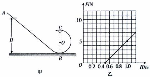 19.(13分)在半径R=5000km的某星球表面,宇航员做了如下实验,实验装置如图甲所示,竖直平面内的光滑轨道由轨道AB和圆弧轨道BC组成,将质量m=0.2kg的小球从轨道AB上高H处的某点由静止滑下,用力传感器测出小球经过C点时对轨道的压力F,改变H的大小,可测出相应F的大小,F随H的变化如图乙所示。求: