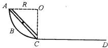 14.如图所示,ABC是一段竖直平面内的光滑的1/4圆周长的圆形轨道,圆轨道的半径为R,O为圆心,OA水平,CD是一段光滑的水平轨道,一根长