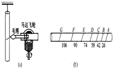 (1) 、毛笔画的线距时间间隔T=_____,b图中圆柱棒的_____端是悬挂端.(填“左”或“右”)