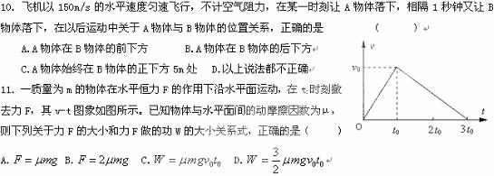 9.一质量为m的物体被人用手由静止竖直向上以加速度a匀加速提升h,关于此过程下列说法中不正确的是 ( )