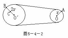11.如图5-4-2所示皮带传动装置,皮带轮O和Oˊ上的三点A、B和C,OA=OˊC=r,OˊB=2r。则皮带轮转动时A、B、C三点的情况是( )