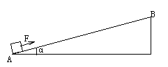 28.如图所示,恒力F=100N作用在物体上使物体沿斜坡上升。物体在坡底A的初速度为10m/s,到达坡顶B时的速度为4m/s,坡的长200m,高10m,物体的质量为100kg(g=10m/s2)求: