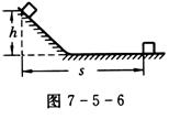 如图所示,小滑块从斜面顶点A由静止滑至水平部分C点而停止。已知斜面高为h,滑块运动的整个水平距离为s,设转角B处无动能损失,斜面和水平部分与小滑块的动摩擦因数相同,求此动摩擦因数![]()