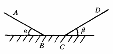 32.(10分)如图所示,一个滑块质量为2kg,从斜面上A点由静止下滑,经过BC平面又冲上另一斜面到达最高点D。已知AB=100cm,CD=60cm,∠α=30°,∠β=37°,若AB、CD均光滑,而只有BC面粗糙,BC=28cm且BC面上各处粗糙程度相同,(g取10m/s2,sin370=0.6),求:(1)滑块与BC面的动磨擦因素。(2)滑块最终停在BC面上什么位置?