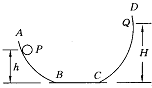 33.滑板运动是一项惊险刺激的运动,深受青少年的喜爱.如图所示是滑板运动的轨道,AB和CD是一段圆弧形轨道,BC是一段长4 m的水平轨道.一运动员从AB轨道上P 点以6 m/s的速度下滑经BC轨道后冲上CD轨道,到Q点时速度减为零.已知运动员的质量为50 kg,h=2 m,H=3 m,不计圆弧轨道上的摩擦,g=10m/s2.求:
