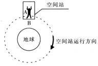 如图所示,在圆轨道上运行的国际空间站里,一宇航员A相对空间舱静止“站”在舱内朝向地球一侧的“地面”B上,下列说法正确的是( )