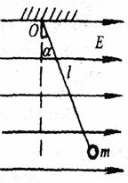 于一匀强电场中,电场强度大小为E,方向是水平的。已知当细线离开竖直位置的偏角为a