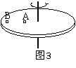 质量相等的A、B两物体,放在水平的转台上,A离轴的距离是B离轴距离的一半,如图3所示,当转台旋转时,A、B都无滑动,则下列说法正确的是:( )
