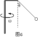 14.(20分)如图6所示,已知绳长为L1=20cm,水平杆L2=10cm,小球质量m=0.3kg,整个装置可绕竖直轴转动,重力加速度g=10m/s2, 问:(1)要使绳子与竖直方向成450角,试求该装置必须以多大的角速度转动才行?(2)此时绳子的张力?(结果可用根式表示)