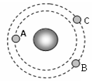 4. 三颗人造地球卫星A、B、C绕地球作匀速圆周运动,如图所示,已知MA=MB<MC,则对于三颗卫星,正确的是( )