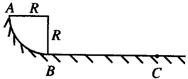18.(9分)如图所示,半径R=1m的1/4圆弧导轨与水平面相接,从圆弧导轨顶端A,静止释放一个质量为m=2kg的小木块,测得其滑至底端B时速度VB=3m/s,以后沿水平导轨滑行BC=3m而停止。(g取10m/s2)求: