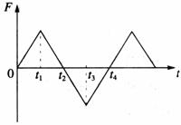 7 质点所受的力 F 随时间变化的规律如图所示,力的方向始终在一直线上。已知 t=0 时质点的速度为零。在图示的 t1、t2、t3 和 t4 各时刻中,哪一时刻质点的动能最大?( )