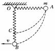 如图所示,质量为m=2kg的小球系在轻质弹簧的一端,另一端固定在悬点O处,将弹簧拉至水平位置A处,且弹簧处于自然状态,弹簧的原长0A=0.3m;然后小球由静止释放,小球到达距O点下方h=0.5m处的B点时速度为VB=2m/s, 求(1)小球从A运动到B的过程中弹簧的弹力做的功和此时弹簧的弹性势能.(2)求该弹簧的劲度系数