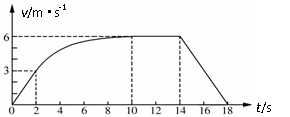 某兴趣小组对一辆自制遥控电力小车的性能进行研究。他们让这辆小车在水平的直轨道上由静止开始运动,并将小车运动的全过程记录下来,通过处理转化为v-t图象,如图所示(除2s-10s时间段图象为曲线外,其余时间段图象均为直线)。已知在小车运动的过程中,2s-14s时间段内小车的电动机以额定功率运行,在14s末通过遥控让电动机停止工作而让小车自由滑行,小车的质量为1kg,运动过程中小车所受到的阻力大小不变,g取10m/s2,求:
