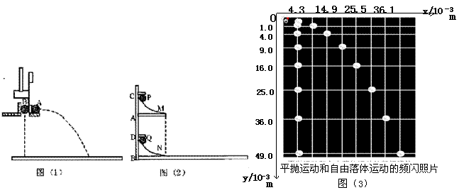 (1)甲同学采用如图(1)所示的装置.用小锤打击弹性金属片,金属片把A球沿水平方向弹出,同时B球被松开,自由下落,观察到两球同时落地,改变小锤打击的力度,即改变A球被弹出时的速度,两球仍然同时落地,这说明 .