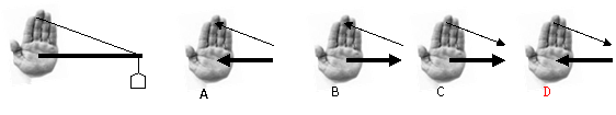 4.如图所示,用一根细绳和一根杆组成三角支架,绳的一端绕在手指上,杆的一端顶在掌心,当A处挂上重物时,绳与杆对手指和手掌均有作用,对这两个作用力的方向判断完全正确的是图中的( )