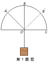 7.如图所示,绳OA、OB等长,A点固定不动,将B点沿圆弧向C点缓慢移动,在此过程中,绳OB的拉力将( )