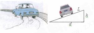周运动。设内外路面高度差为h,路基的水平宽度为d,路面的宽度为L。已知重力加速度为g。要使车轮与路面之间的横向摩擦力(即垂直于前进方向)等于零,则汽车转弯时的车速应等于