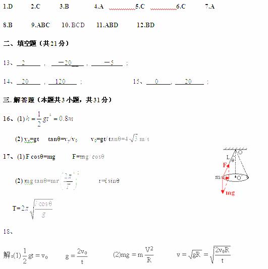 17、如图圆锥摆摆长为L,摆球质量为m,转动中摆线与竖直方向夹角为θ。