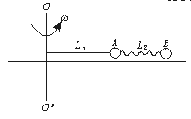 15.质量为mA和mB的两个小球A和B用轻质弹簧连在一起,用长为L1的细绳将A球系于O轴上,使AB两球均以角速度ω在光滑的水平面上绕OO′轴做匀速圆周运动,如图4-2-16所示,当两球间的距离为L2时,将线烧断,线被烧断的瞬间,两球加速度aA和aB各是多少?